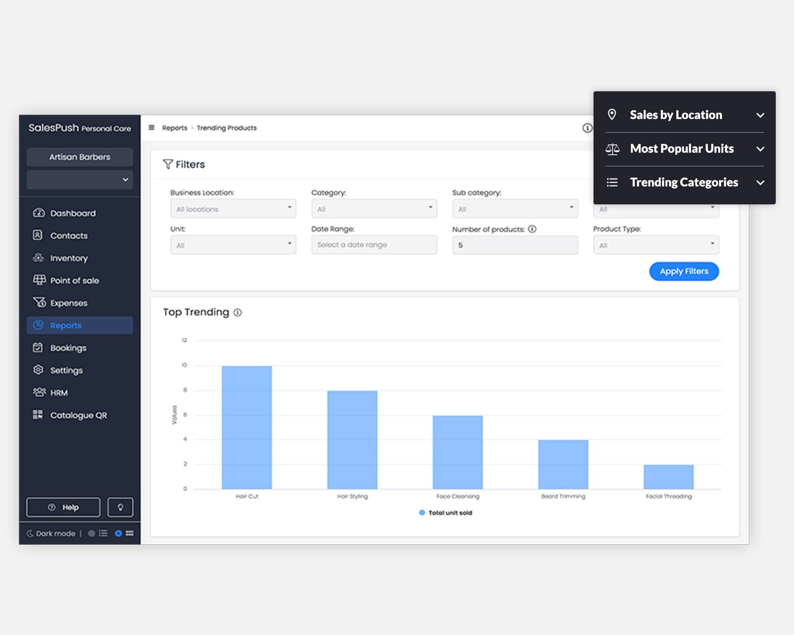 - Personalize your hair salon’s POS dashboard and its outlook from a variety of options